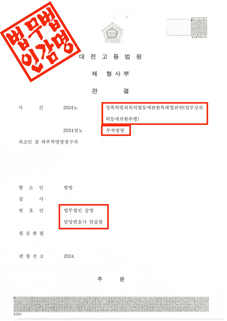 2차 가해로 단절된 피해자 합의 재추진 항소심에서 집행유예를 이끌어내기 위한 최우선 과제는 피해자와의 합의 및 처벌불원서 확보였습니다. 그러나 1심 당시 의뢰인 측의 공격적인 변론으로 인해 피해자는 이미 퇴사 후 심각한 정신적 후유증을 앓고 있었으며, 합의 의사가 전혀 없다는 강경한 태도를 보였습니다.