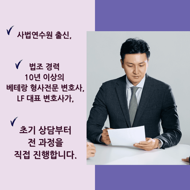 담당 변호인의 역량에 따라 사건 진행 과정은 물론 결과적인 부분 또한 달라질 수 있습니다.