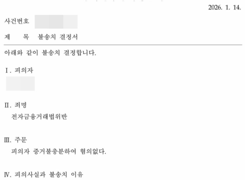 마지막으로 저희가 전자금융거래법위반 사건에서 불송치 결과를 받아낸 사례를 남겨드리겠으니 조금만 더 집중해서 읽어보시기 바랍니다.