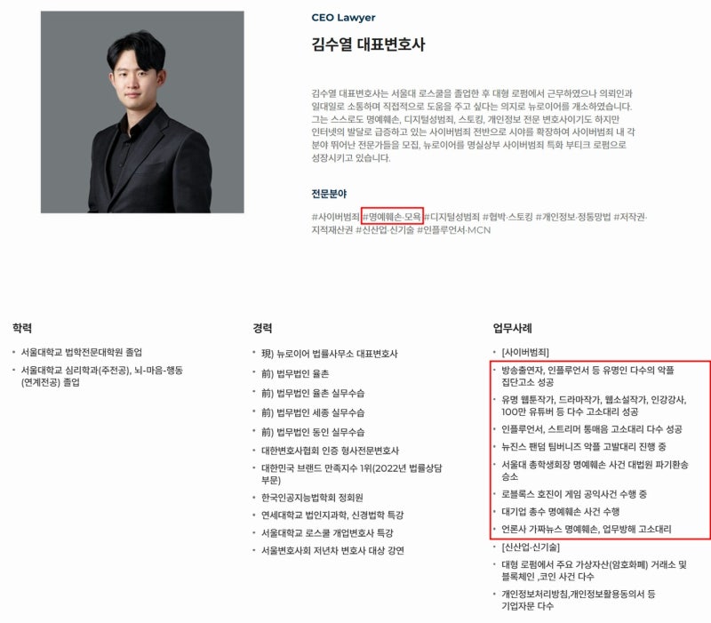 뉴로이어 법률사무소 김수열 대표변호사입니다.