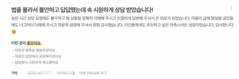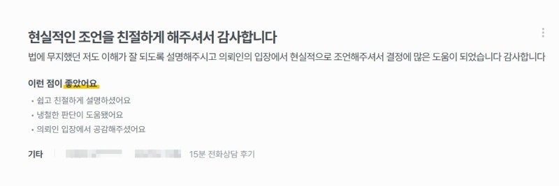 실제 의뢰인께서 남겨주신 감사의 후기입니다.