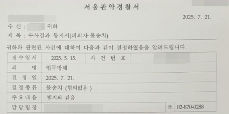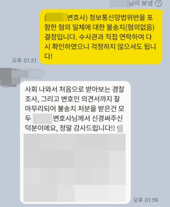 마지막으로 저희가 실제로 유사 사례에서 무혐의 처분을 받아낸 결과를 남겨드리겠으니 조금만 더 집중해주시기 바랍니다.