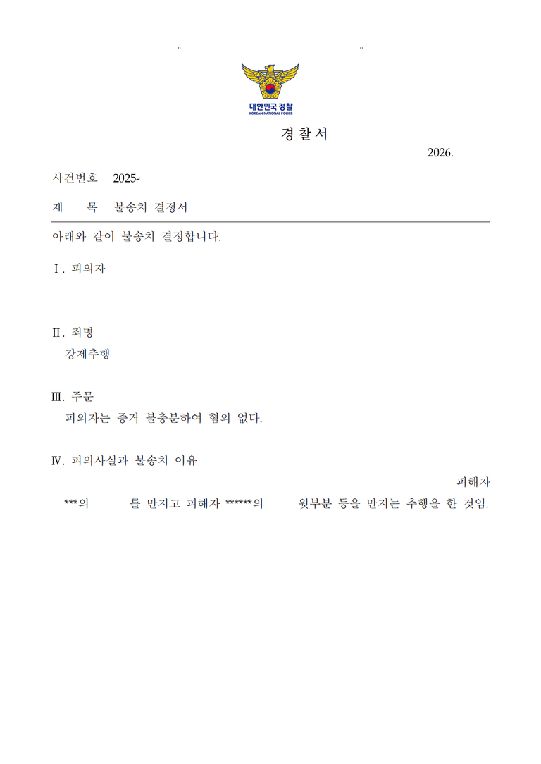 그 결과 경찰 수사 단계에서 불송치(혐의없음) 결정을 받을 수 있었습니다.