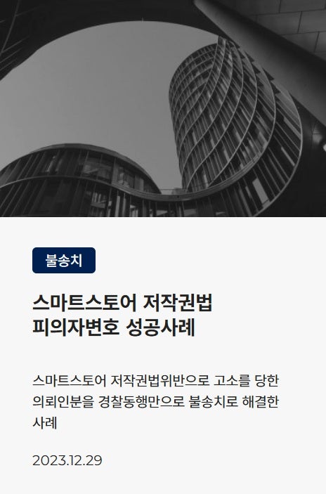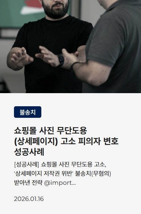 ![[저작권]스마트스토어 상세페이지 저작권법 위반 무혐의 전략가이드](/_next/image?url=https%3A%2F%2Fd2ai3ajp99ywjy.cloudfront.net%2Fuploads%2Ftitleimage%2Foriginal%2F5c664c2841b5b909cf5ff8d8-original.jpg&w=3840&q=75)