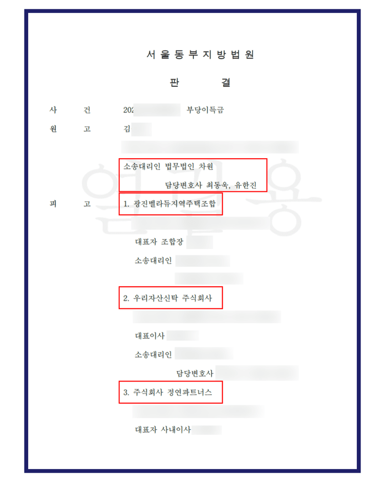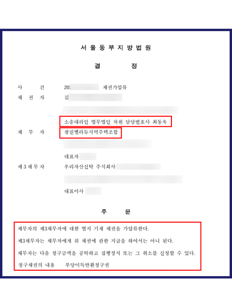따라서 소송 수행뿐 아니라 판결금 회수까지 책임지고 진행할 수 있는 변호사를 선택하는 것이 매우 중요합니다. 지역주택조합 관련 소송으로 변호사를 선임할 때에는 단순히 승소 경험만 확인할 것이 아니라, 자산추적, 강제집행, 추심금 청구 소송 등의 절차를 통해 판결금을 실제로 회수한 경험이 있는지 여부를 함께 살펴보시는 것이 필요합니다.