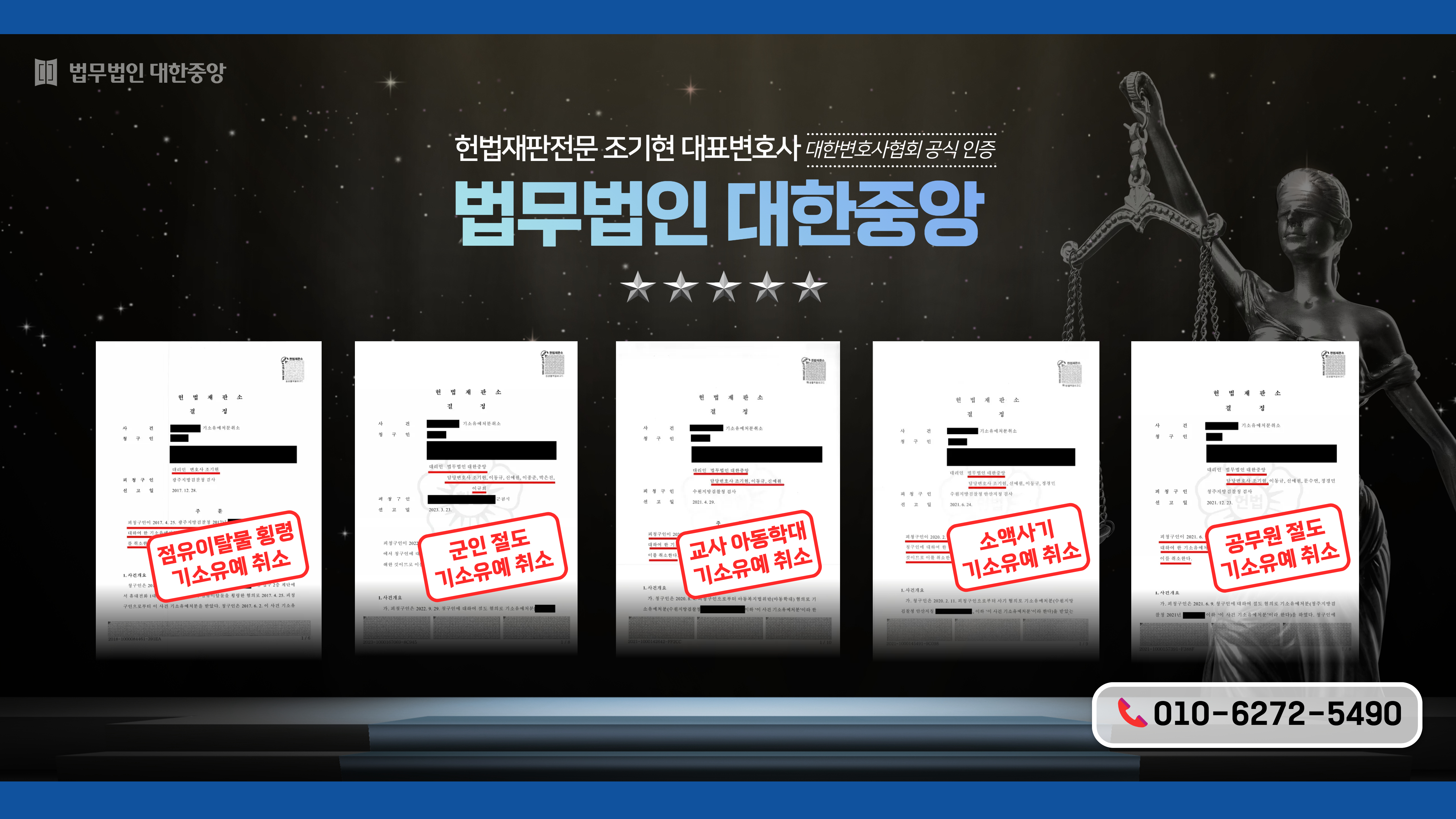 저희 법무법인 대한중앙은 즉시 기소유예 취소를 구하는 헌법소원 심판을 청구했습니다.