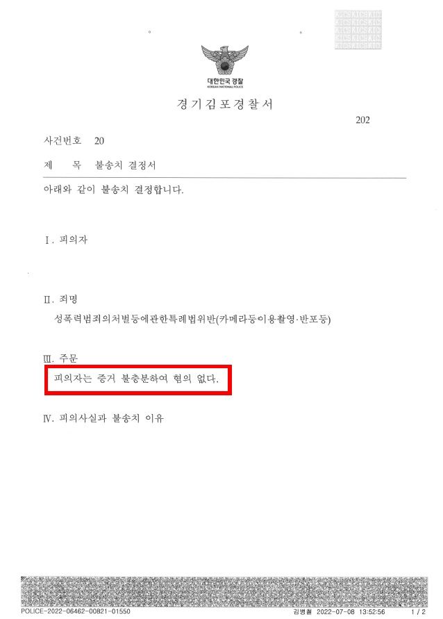 제가 의견서를 제출하자마자, 본건은 1달 안에 종결되었습니다. 제 의견서에는 카메라등이용촬영죄의 법리 및 증거수집방식에 대해서 자세히 서술되어 있었고, 이런 논리를 쉽게 깨지는 것이 아닙니다. 이렇게 카메라등이용촬영죄의 또다른 성공사례가 만들어졌고, 의뢰인은 무사히 일상으로 돌아갈 수 있었습니다. 열 명의 범인을 놓치더라도, 한 명의 억울한 사람을 만들어서는 안 됩니다. 제가 항상 마음 속에 가지고 있는 생각입니다. 카메라등이용촬영죄로 고통을 받고 계신 분이 있다면 편안히 연락주시기 바랍니다. 넘치는 열정으로 도와드리겠습니다.