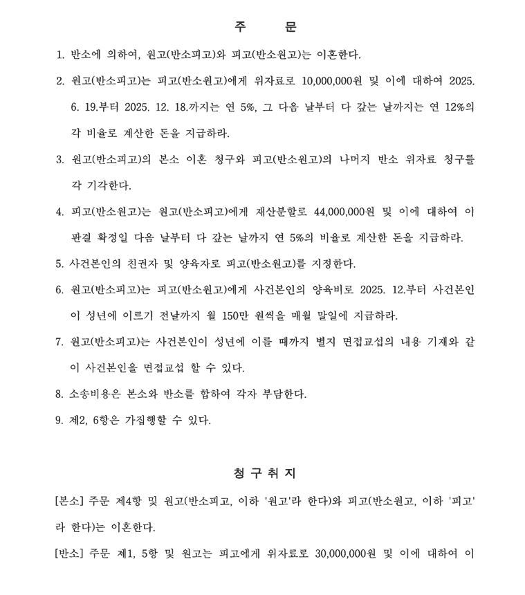 이에 법원은 배우자의 위자료 청구를 기각, 의뢰인의 위자료 청구를 받아들여서 배우자가 의뢰인에게 위자료로 1,000만 원을 지급하라는 내용의 판결을 선고했습니다.