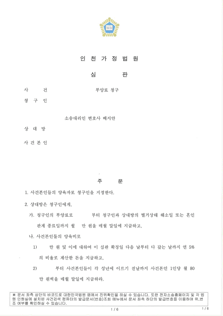 [양육비•부양료청구]승소사례