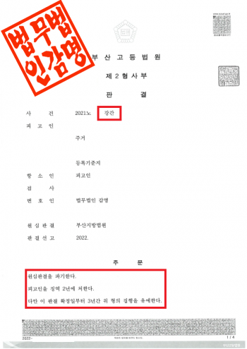 부산고등법원은 이 사건에 대해 다음과 같이 선고하였습니다.