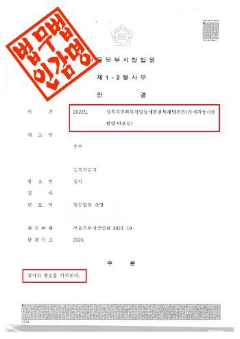 서울북부지방법원은 이 사건에 대해 다음과 같이 선고하였습니다.