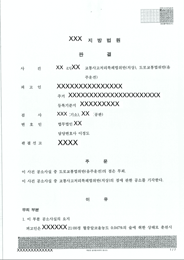 법원은 이정도 변호사의 적극적인 변론을 받아들이고 A씨의 음주운전 혐의에 대해 무죄를 선고했습니다.