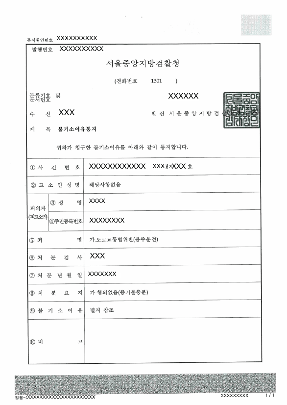 결론적으로, 검찰청은 이정도 변호사의 변소 취지를 받아들여, "피의자는 16:27경까지 술을 마셨던 것으로 보이는 점, 피의자가 음식점에서 피의자의 집까지 운전을 한 거리는 1km 상당인 점, 피의자는 운전 후 약 1시간 1분이 흐른 후인 18:15경 음주 측정을 하였으므로 이 때는 음주 후 30~90분 이내로 혈중알코올농도의 상승기라고 볼 수 있는 점, 18:15경 측정한 혈중알코올농도가 0.042%였으므로 운전시인 16:27경의 혈중알코올 농도는 이보다 더 낮았을 것으로 보이는 점 등" 등을 이유로 도로교통법(음주운전)위반혐의에 대하여 불기소(혐의없음)처분 결정을 하였습니다.