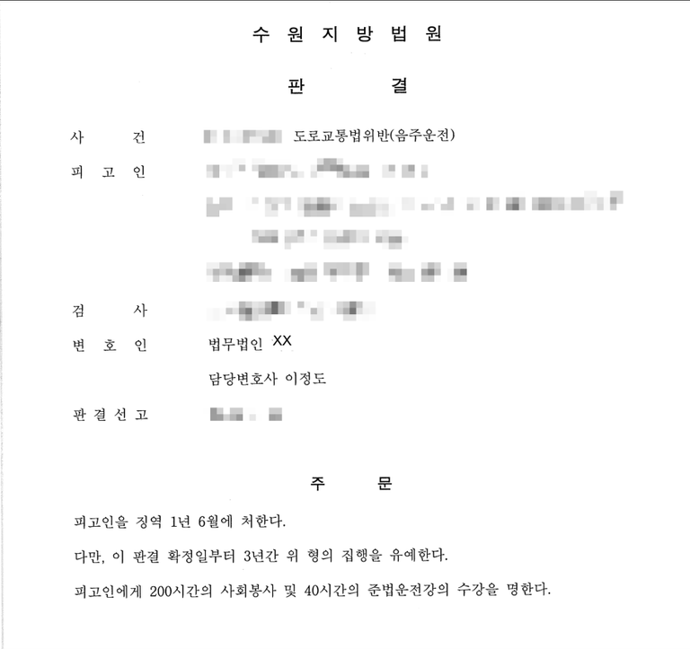 이미 음주운전 처벌 전력이 5회나 있었고 변론도 종결되어 버린 상황이었기 때문에 처벌 감경을 이끌어 낼 수 있는 각종 요소를 최대한 적극적으로 피력하면서 법원을 설득해 나갔습니다.