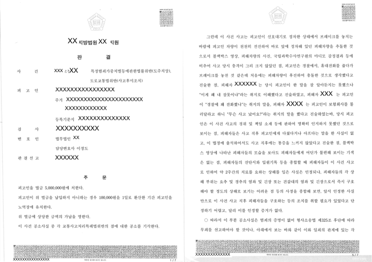 ▲사고가 발생한 경위를 고려했을 때, 피해자들에게 가해진 충격이 크지 않았을 것이라 짐작되었는데 실제로 피해자들이 발급받은 진단서를 살펴보면 '상해'라고 부를 만한 수준의 신체적 문제가 발생하지 않은 것이 확인되었습니다.