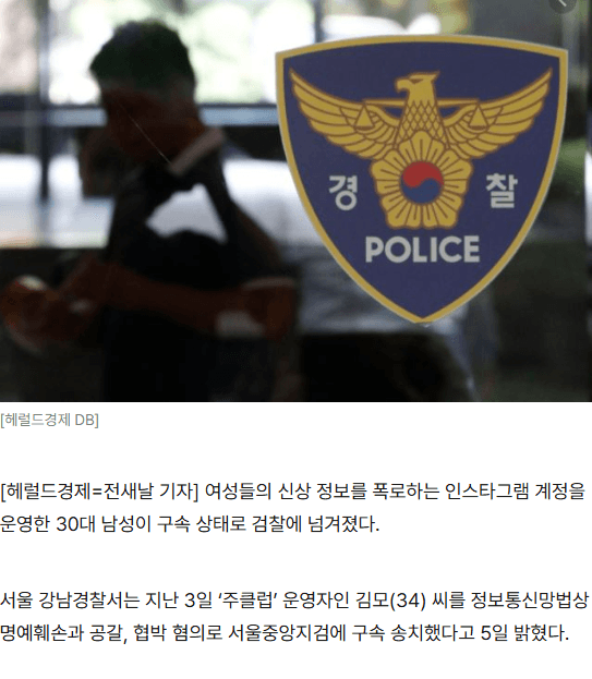 헤럴드경제, 인스타에 여성 사생활 폭로…삭제 대가로 코인 뜯어낸 30대 구속 송치 [세상&]