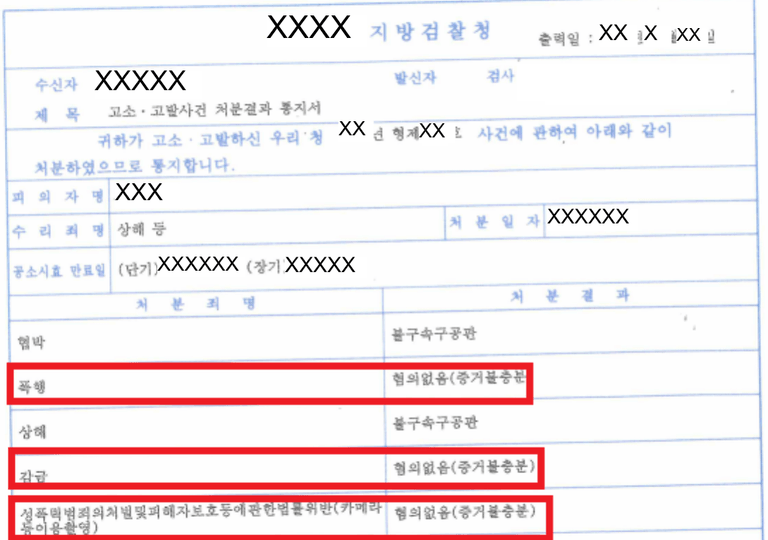 위와 같은 일련의 범행들이 모두 2~3일에 걸쳐 이루어졌음에도 위 고소인과 피의자 단둘이 있는 상황에서 벌어진 사건이어서 일부 범행에 대하여는 증거불충분을 이유로 불기소 처분을 하여 고소인(피해자)가 매우 낙심하였던 상황이었습니다.
