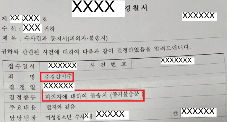 결정 : 준강간미수 불송치 결정