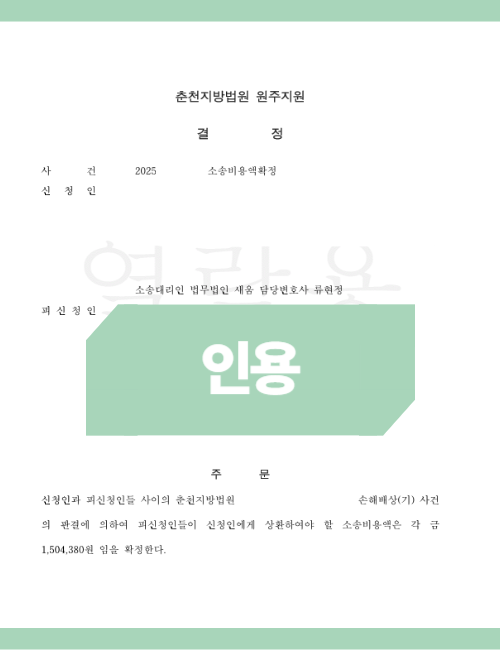 집행문 및 확정증명원 발급: 결정문을 토대로 법원에서 집행문을 부여받습니다.