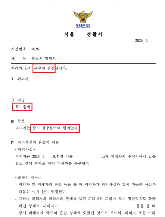 오늘은 연인 관계에서 특수협박 혐의로 수사를 받게 되었으나 열흘 만에 '불송치' 결정을 받아낸 사례를 소개하겠습니다.