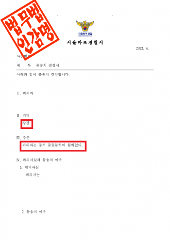 서울마포경찰서는 이 사건에 대해 다음과 같은 사유로 불송치 결정을 하였습니다.