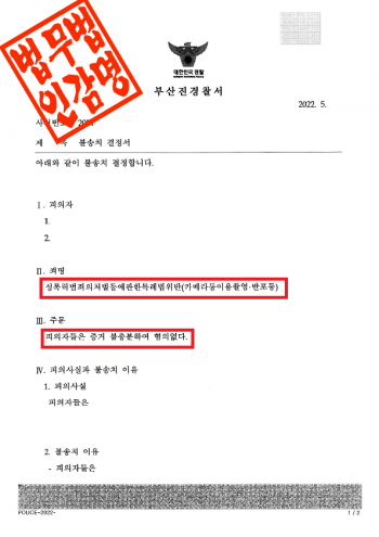 부산진경찰서는 이 사건에 대해 다음과 같은 사유로 불송치 결정을 하였습니다.
