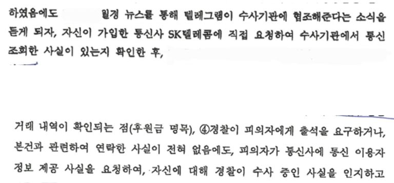 전에 밝힌 바와 같이 통신이용자정보제공, 통자제 제도 자체가 좀 잘못되어 있다고 생각하고 있습니다. 향후 수사대상에 포함되는지에 대한 판단과 관련하여서는 통신이용자정보제공, 통자제가 100%는 아니나 어느 정도 의미는 있을 것입니다.