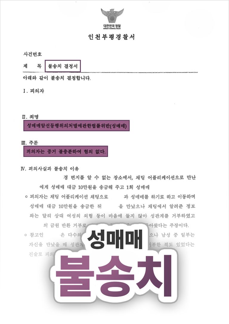 등이 종합적으로 검토되면서 수사기관은 성매매 행위가 있었다고 인정할 만한 증거가 부족하다고 판단했습니다.