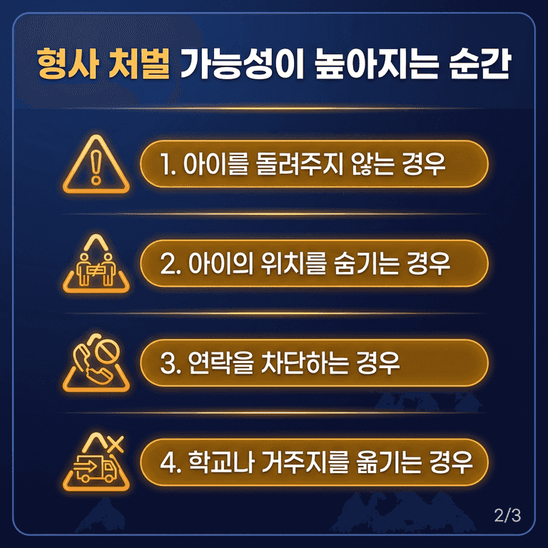 하지만 양육권이 없는 부모가 아이를 데려가 돌려주지 않는 순간, 형사 사건으로 번질 수 있습니다.