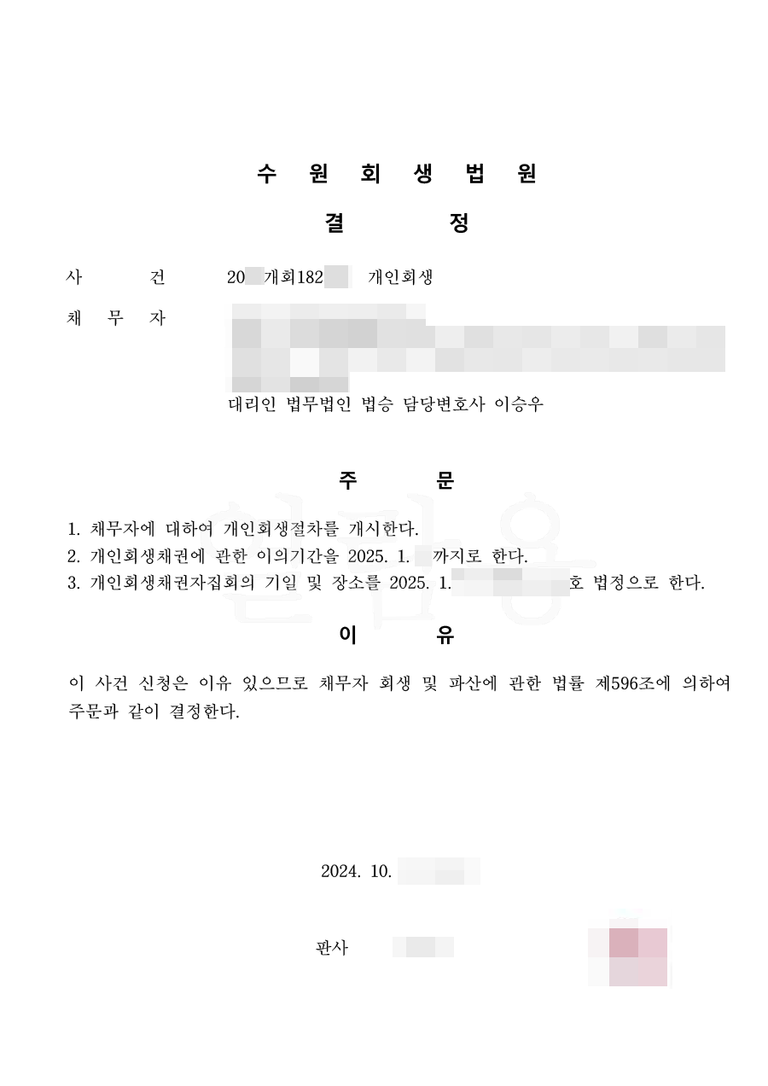 아이들에게 부끄럽지않은 부모가 되고싶어 새로운 마음으로 법무법인 법승 회생팀에 사건을 의뢰하게 되었습니다.