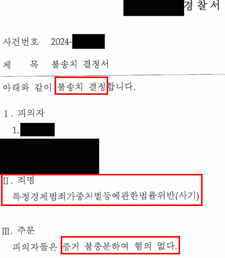 [성공사례] 투자 사기 공범 혐의, 경찰 수사단계에서 ‘혐의없음’ 불송치결정을 이끌어낸 사례