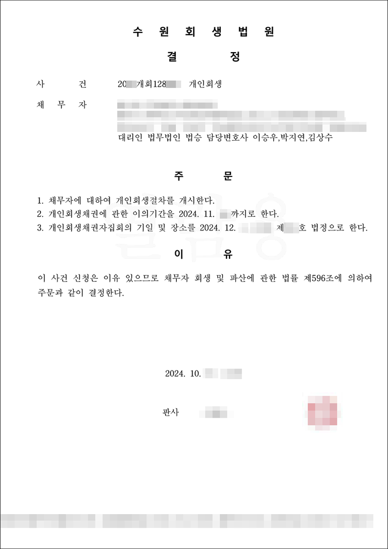 채무는 점점 늘어났고 연체가 잦아지면서 의뢰인은 더이상 이러한 상황을 감당할 수 없다고 판단하여 법무법인 법승 회생팀에 사건을 의뢰하였습니다.