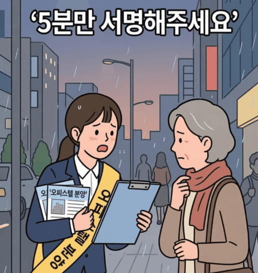 5분만 시간 주시면 됩니다. 서명 한번먼 해주시면 돼요."