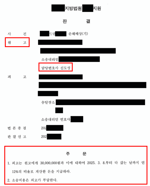 결국 재판부는 본 변호인의 주장을 모두 받아들여, 피고의 주장을 배척하고 피고는 의뢰인에게 위자료 3,000만 원 및 이에 대한 지연손해금을 지급하라는 전부 승소 판결을 선고하였습니다.