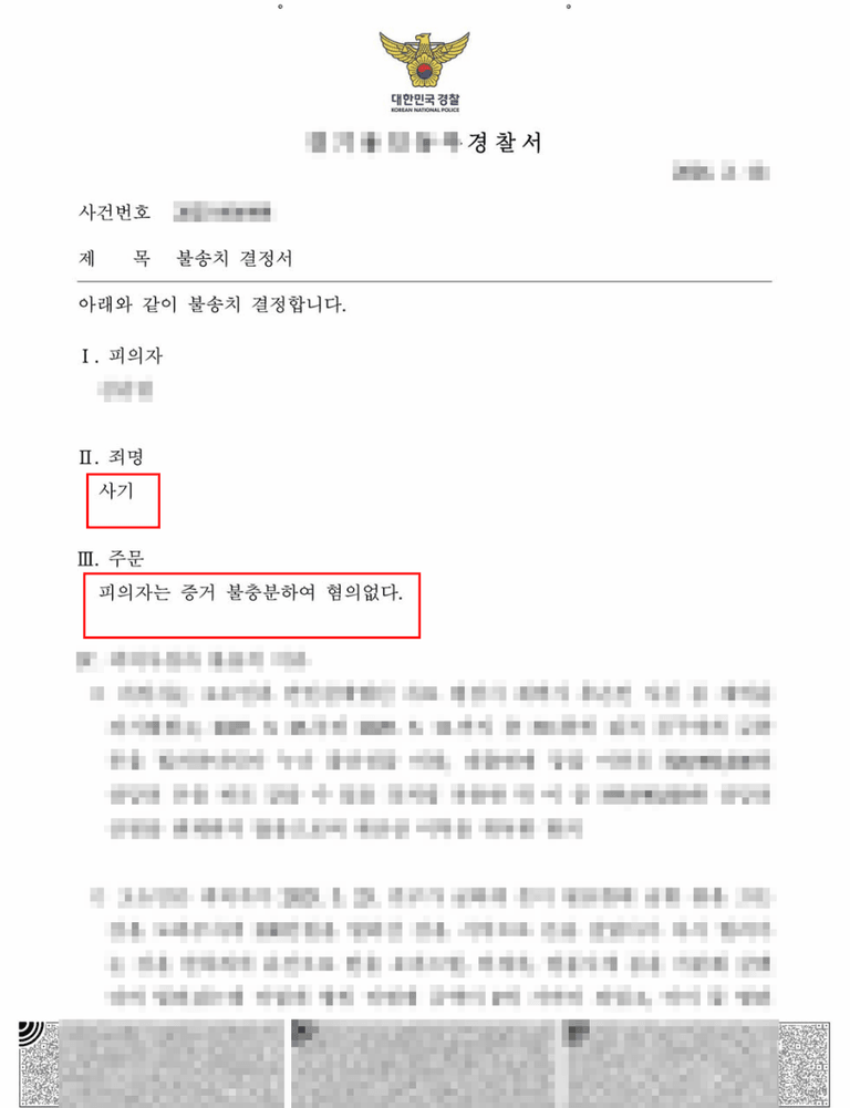 결과적으로 약 1년 가까이 이어진 수사가 이어졌지만 2억 원 사기 사건은 최종적으로 불송치(혐의 없음) 결정으로 마무리될 수 있었습니다.