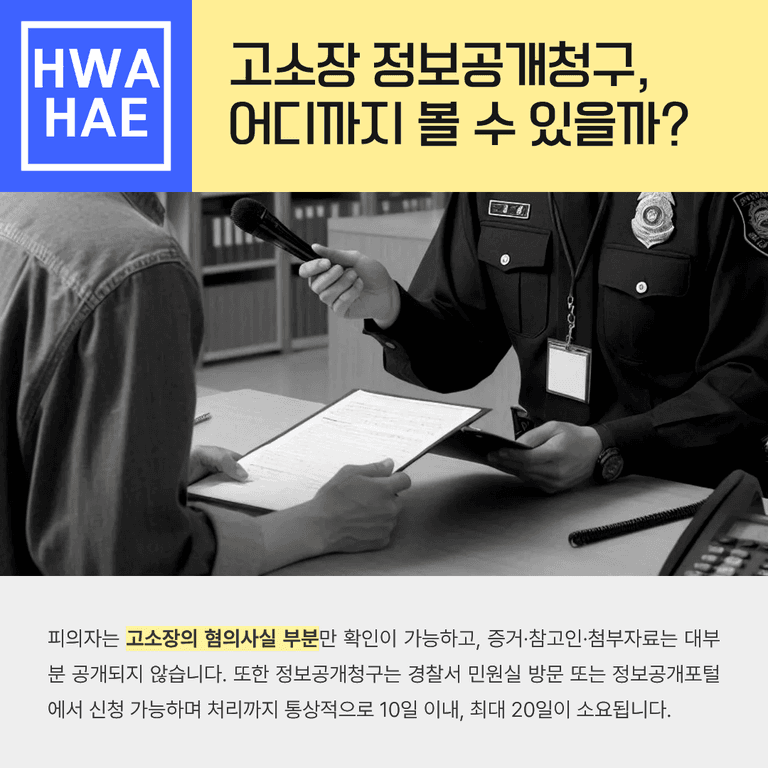 여기서 중요한 것은 바로 조사 일정이 아니라 고소장입니다. 반드시 고소장부터 확인하셔야 합니다. 내가 어떤 내용으로 고소를 당했는지, 상대방이 어떤 사실을 주장하고 어떤 증거를 제출했는지 모르는 상태에서 조사에 들어가는 것은 사실상 대비 없이 시험을 보는 것과 다르지 않습니다.