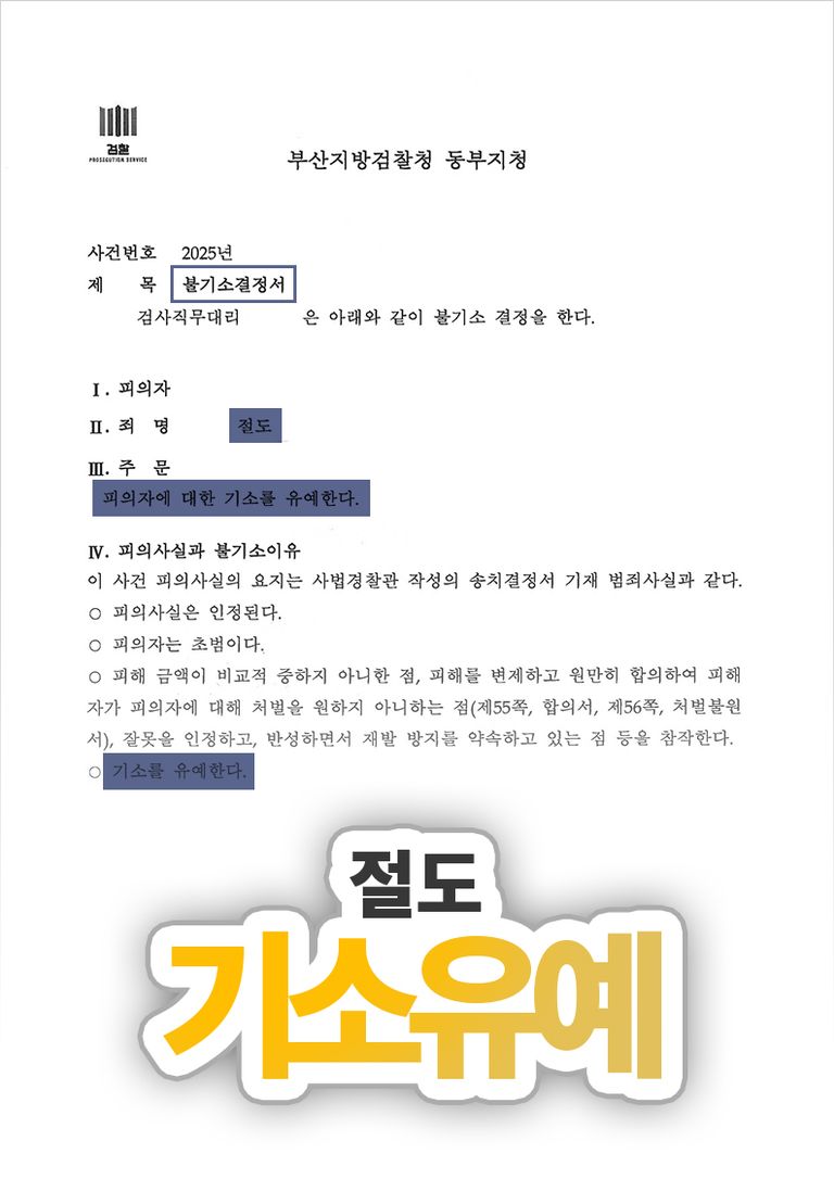 이에 의뢰인은 기소유예 처분을 받을 수 있었습니다.