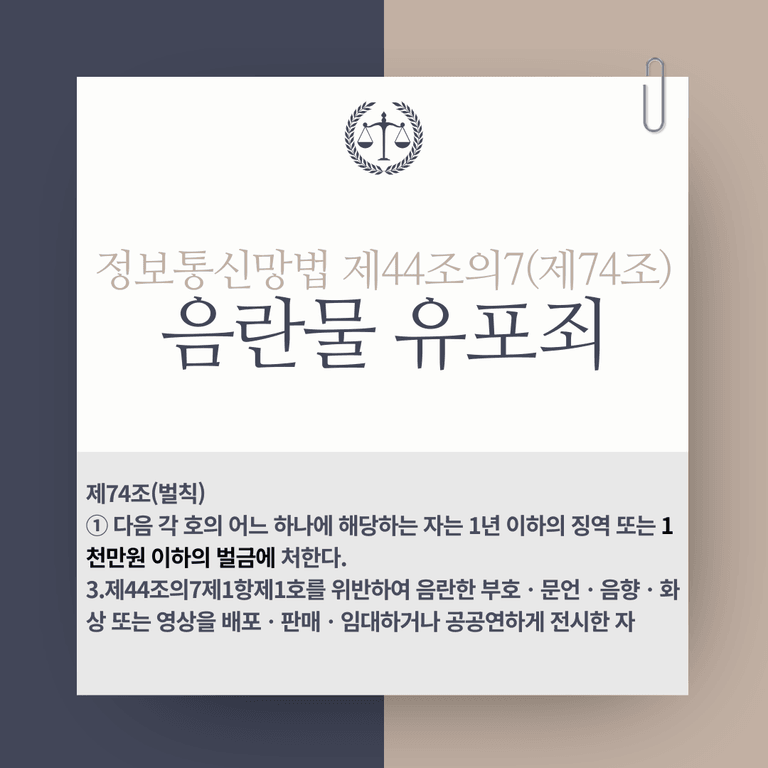 3.제44조의7제1항제1호를 위반하여 음란한 부호ㆍ문언ㆍ음향ㆍ화상 또는 영상을 배포ㆍ판매ㆍ임대하거나 공공연하게 전시한 자