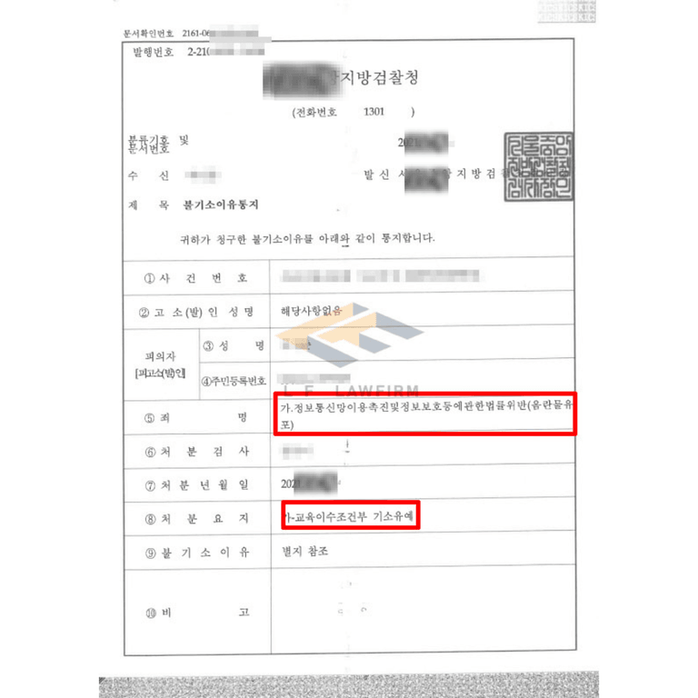 한편 기소유예를 목표로 양형 자료 또한 체계적으로 준비하였습니다. 토렌트 프로그램의 즉시 삭제 및 재사용 금지 조치를 비롯하여, 반성문과 탄원서, 직장 관련 자료를 정리·제출하였고, 디지털 성범죄 예방 교육 이수와 상담·치료 계획 수립을 통해 재범 방지 의지를 객관적으로 입증할 수 있도록 하였습니다.