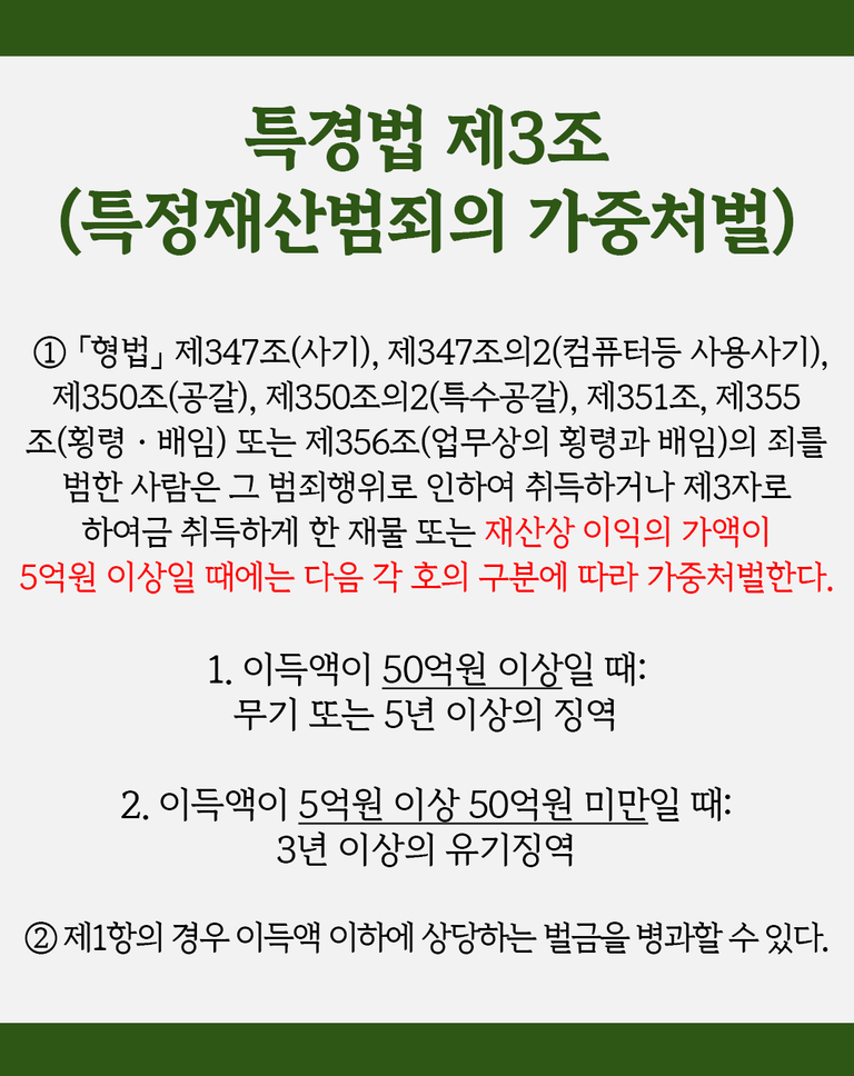 50억 원 이상 → 무기징역 또는 5년 이상의 유기징역