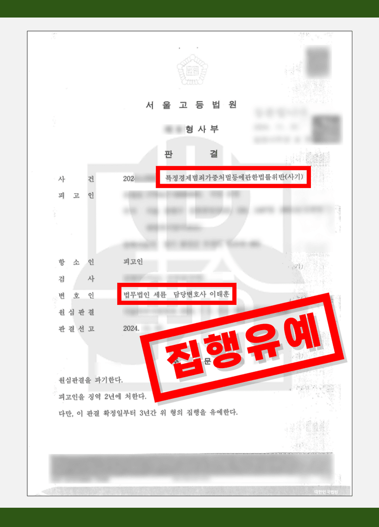 특히 편취 금액이 일정 기준을 넘는 경우에는 일반 사기가 아니라 특정경제범죄 가중처벌 등에 관한 법률(특경법)이 적용되어 더 무거운 처벌이 문제 될 수 있습니다.