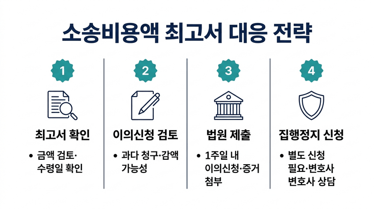 이의신청서 작성: "소송비용액 확정에 대한 이의신청서"를 관할 가정법원에 제출 → 과다/불필요 사유 기재, 증거 첨부