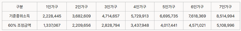 1인 가구의 경우 133만 원, 2인 가구는 220만 원 등인데요.