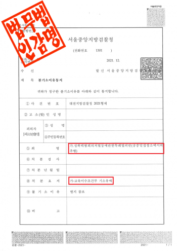 대전지방검찰청은 이 사건에 대해 다음과 같은 사유로 불기소 처분을 하였습니다.