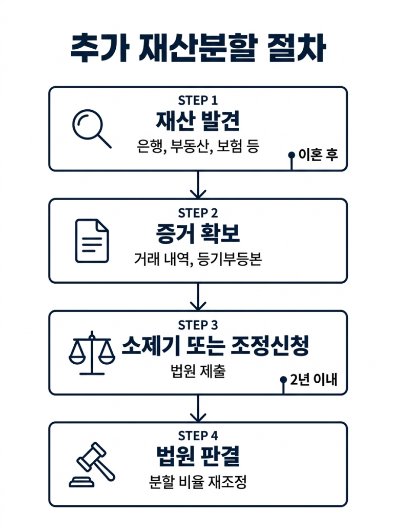 이혼 당시 재산분할에서 누락됐거나 의도적으로 은닉된 재산이 나중에 발견될 경우, 법원에 다시 분할을 청구하는 제도입니다.