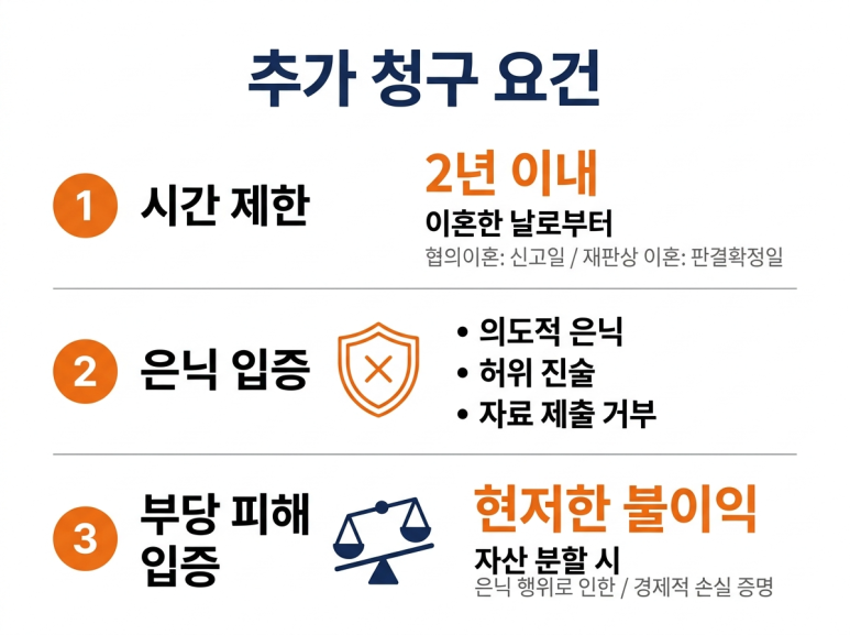 예) 2023년 3월 10일 이혼신고 → 2025년 3월 10일까지 추가 청구 가능