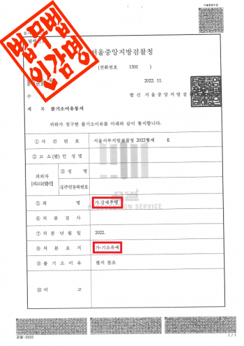 서울중앙지방검찰청은 이 사건에 대해 다음과 같은 사유로 불기소 결정을 하였습니다.
