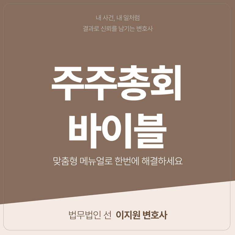 다가오는 정기주주총회 준비로 막막하시거나, 우리 회사만의 완벽한 주총 매뉴얼 제작이 필요하시다면 언제든 로톡을 통해 저 이지원 변호사에게 문의해 주십시오.