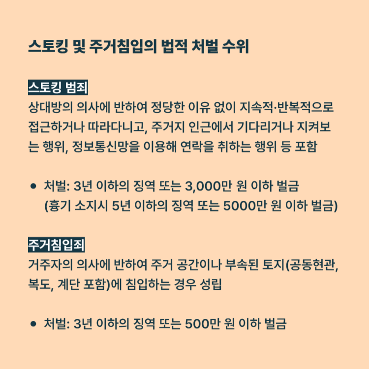 스토킹 및 주거침입의 법적 처벌 수위