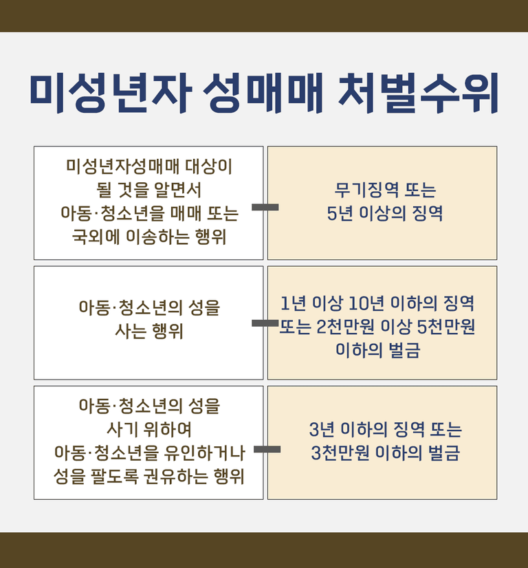 일반적인 성매매는 「성매매처벌법」이 적용되어 비교적 가벼운 처분으로 끝나는 경우도 있지만, 상대방이 미성년자로 판단될 경우 「아동·청소년의 성보호에 관한 법률(아청법)」이 적용됩니다.